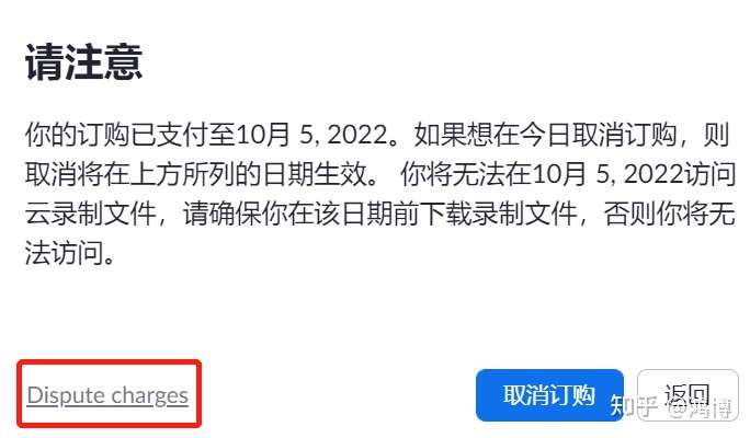 3. 接著會跳出提示訊息,這時候不要按取消訂閱,要按旁邊不顯眼又寫英文的Dispute charges(爭議款)